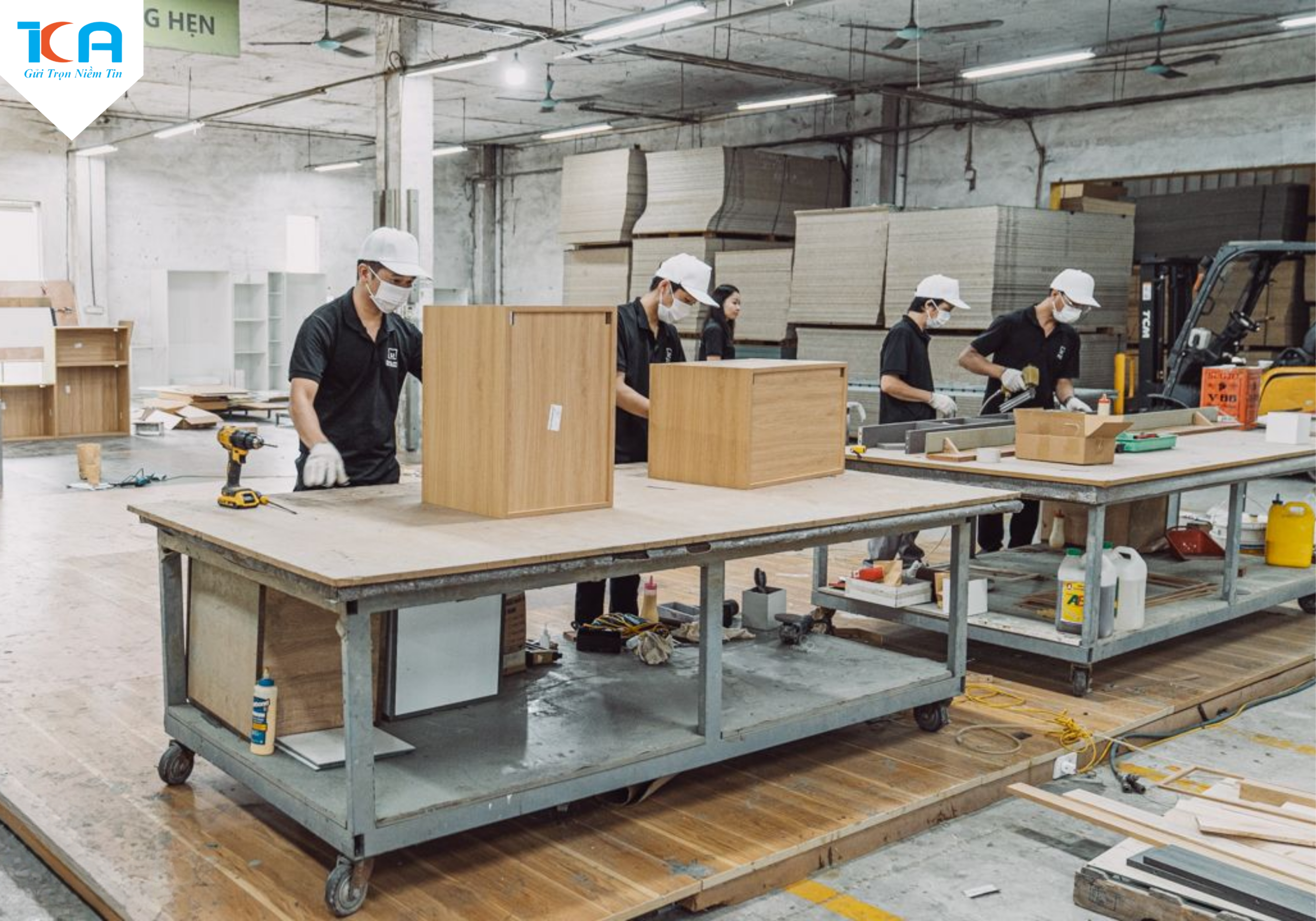 Công nhân nhà máy gỗ chuẩn bị nguồn hàng xuất khẩu.